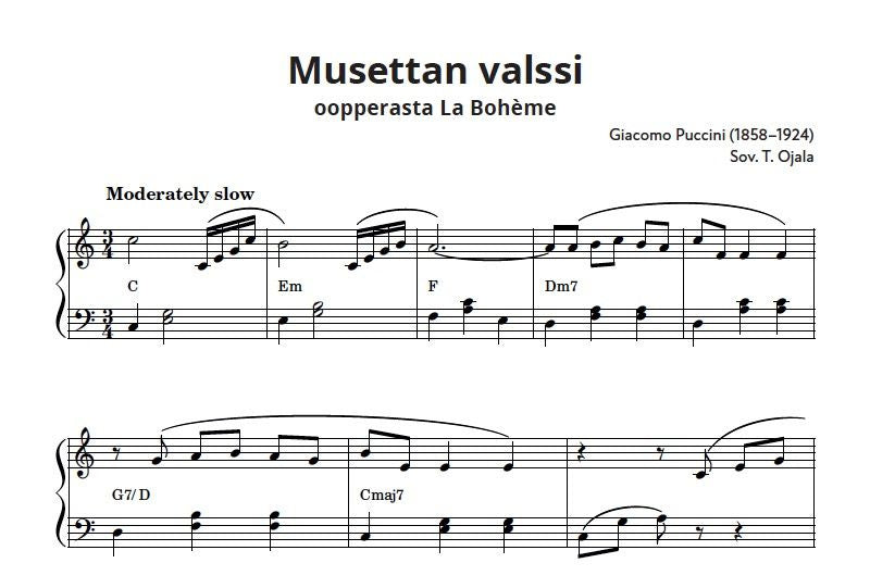 Mukana helpotettuina sovituksina mm. Beethovenin Kuutamosonaatti, Griegin Aamutunnelma, Puccinin Musetten valssi, Debussyn Clair de Lune sekä paljon muita klassikoita.