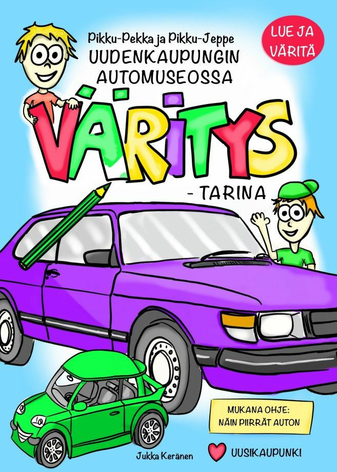 Hauskassa värityskirjassa tutututaan Pikku-Pekan ja Pikku-Jepen kanssa Uudenkaupungin automuseoon.