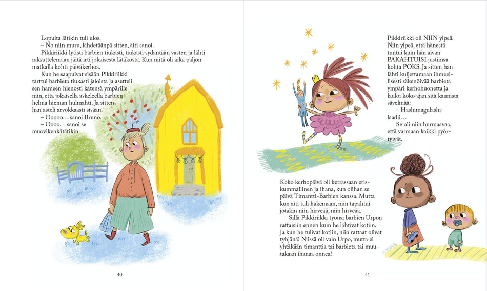 Pikkiriikkiä hiukan pelottaa mennä neuvolaan, kun siellä saatetaan antaa kikspiikki. Ja hän on täynnä poksuvaa iloa, kun keksii houkutella äidin hauskalle seikkailuretkelle. Eikä Pikkiriikin ylpeydellä ole rajoja, kun hän eräänä kauniina päivänä selviää kaikista aamutoimista ihan itse.