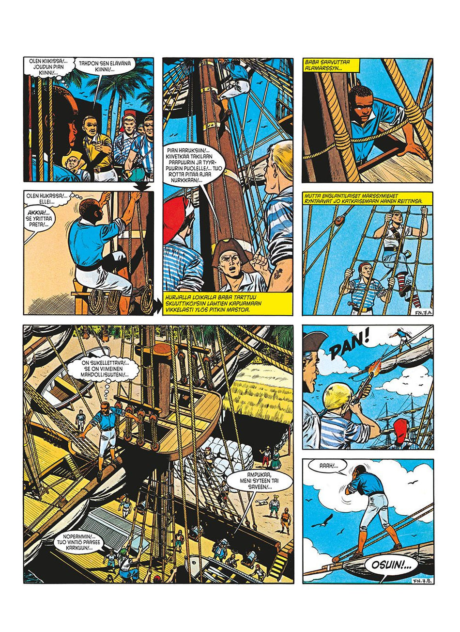 Jean-MichelCharlierinja VictorHubinoninupea merirosvoseikkailu jatkaa täysin purjein. Nyt on sarjan kolmen rakastetuimman seikkailun aika tempaista lukijansa purjelaivojen ja piraattien aikakaudelle, jolloin miekat olivat teräviä ja ruuti kuivaa. Seikkailuviihteen klassikossa ei säästellä meritai... Lue lisää
