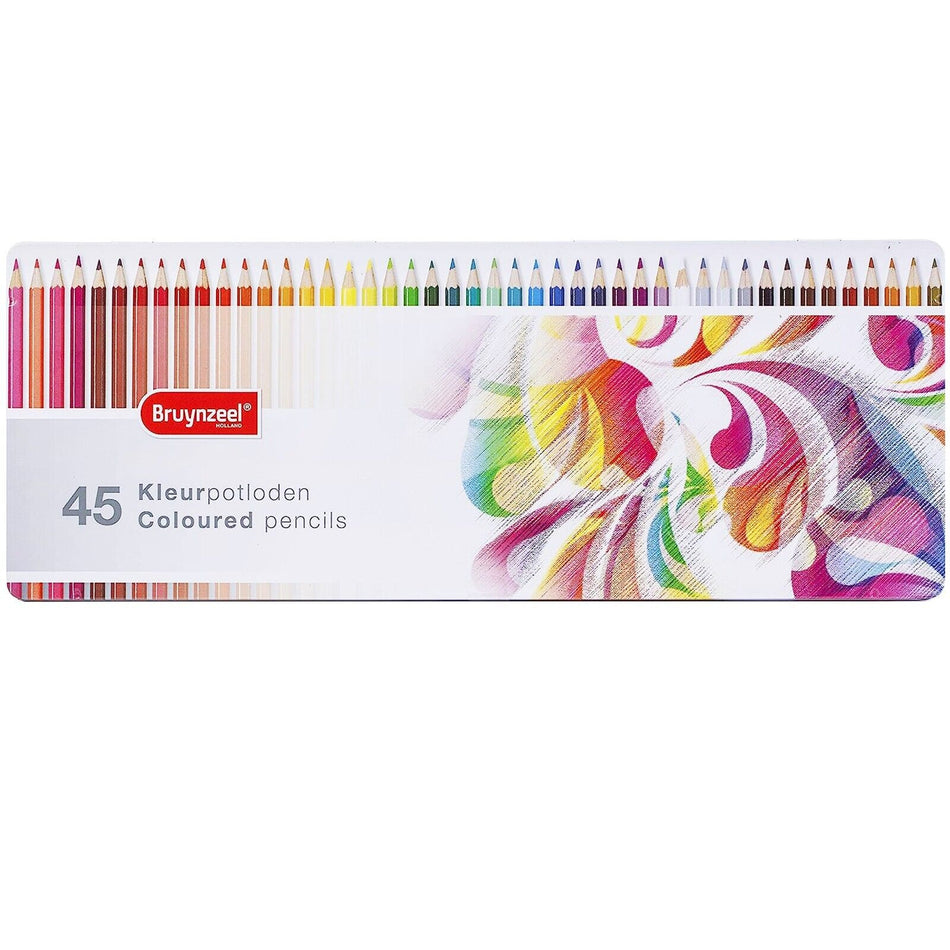 Etsitkö suurta metallirasiaa, joka on täynnä värikyniä? Meillä on sinulle upea Bruynzeel-rasia. Tämä rasia sisältää peräti 45 erilaista värikynää, joilla voit värittää lukemattomia värityskirjoja ja piirustuksia.