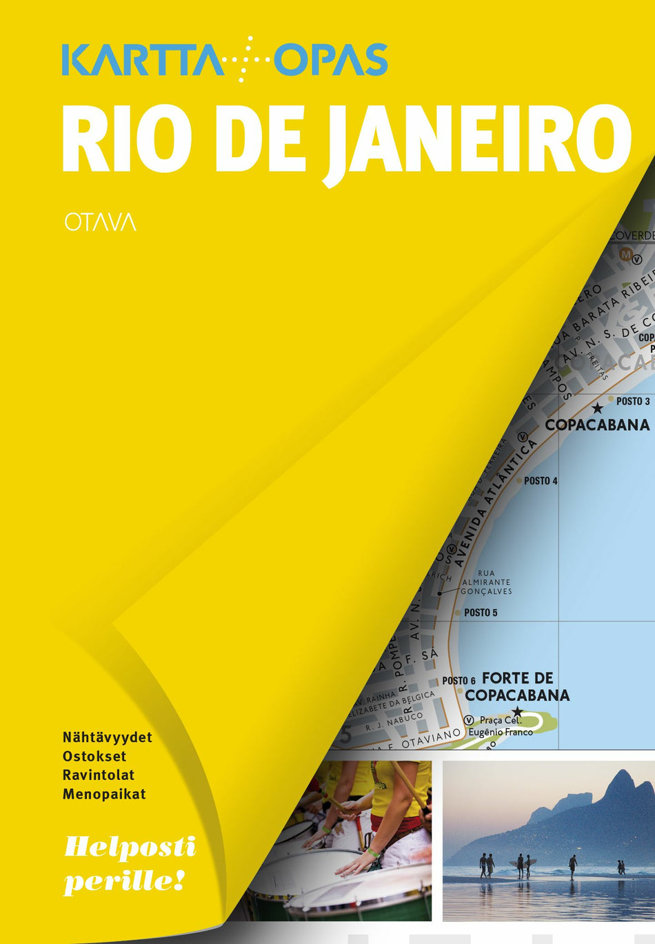 Kartta+0pas Rio de Janeiro rakentuu muiden sarjan oppaiden tapaan selkeiden ja helppokäyttöisten kartta-aukeamien ympärille. Kaupunki on jaettu kuuteen osa-alueeseen, joista kaikista kerrotaan oleelliset tiedot nähtävyyksistä sekä esitellään ravintoloita, baareja, kahviloita, klubeja, tanssikouluja, konserttisaleja ja teattereita, toreja ja ostopaikkoja ym.