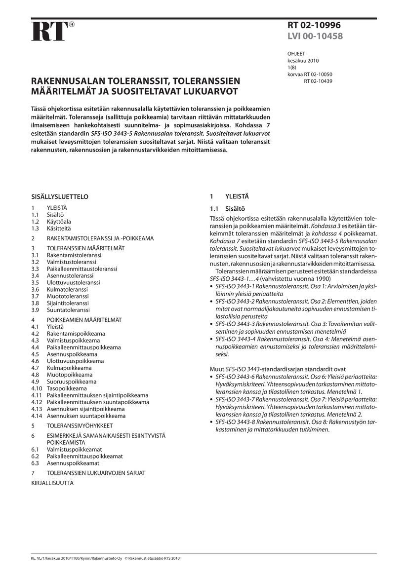 - Avainsanat sanastot; toleranssit; asennustoleranssi; mittatermit; mittaustoleranssi; mittayksiköt; paikalleenmittaus; poikkeamat; rakennusmittaus; rakentamispoikkeamat; SI-yksiköt; toleranssitermit; valmistustoleranssi; mittapoikkeamat