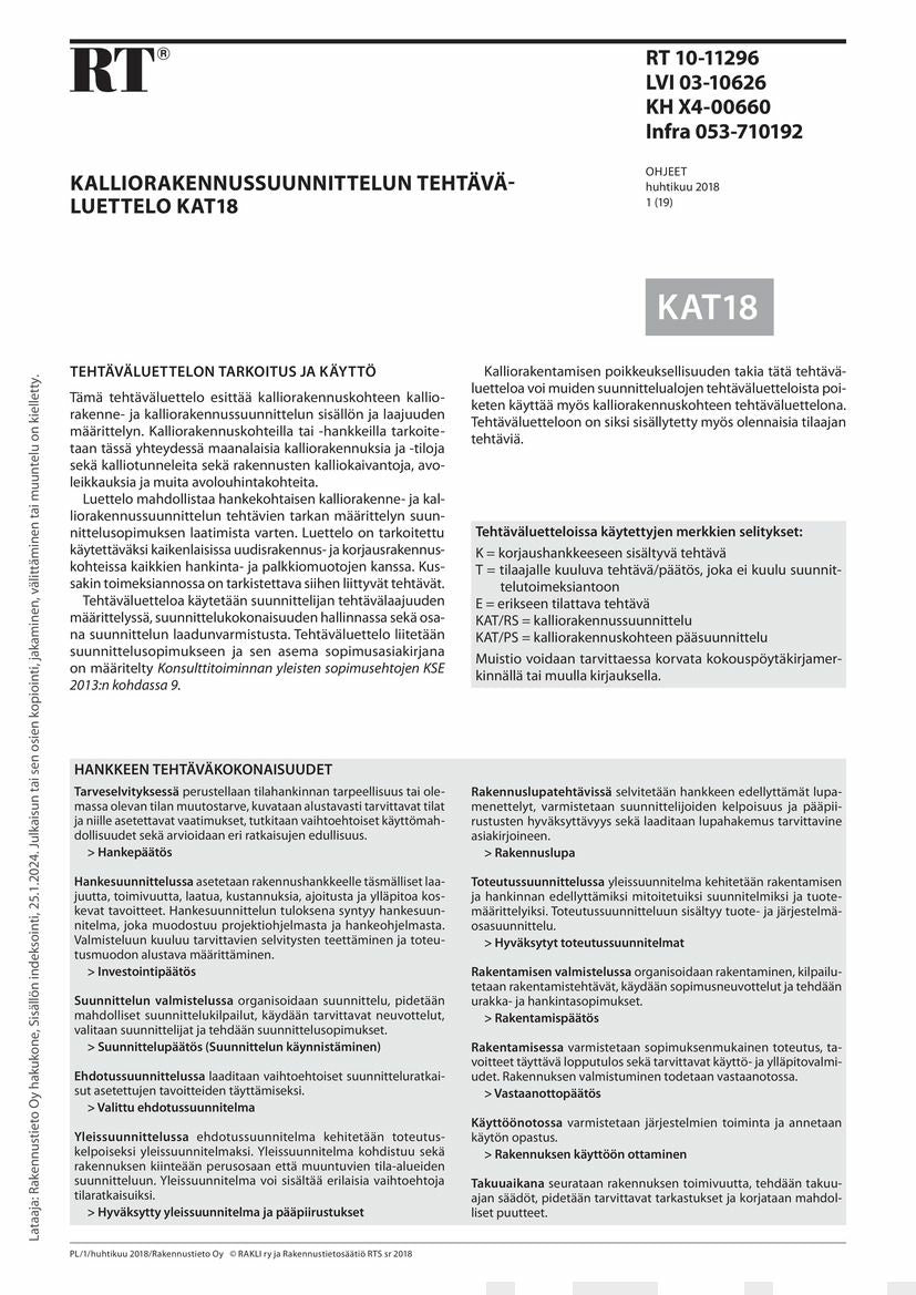 RT 10-11296, Kalliorakennussuunnittelun tehtäväluettelo KAT18 E-kirja, suomi