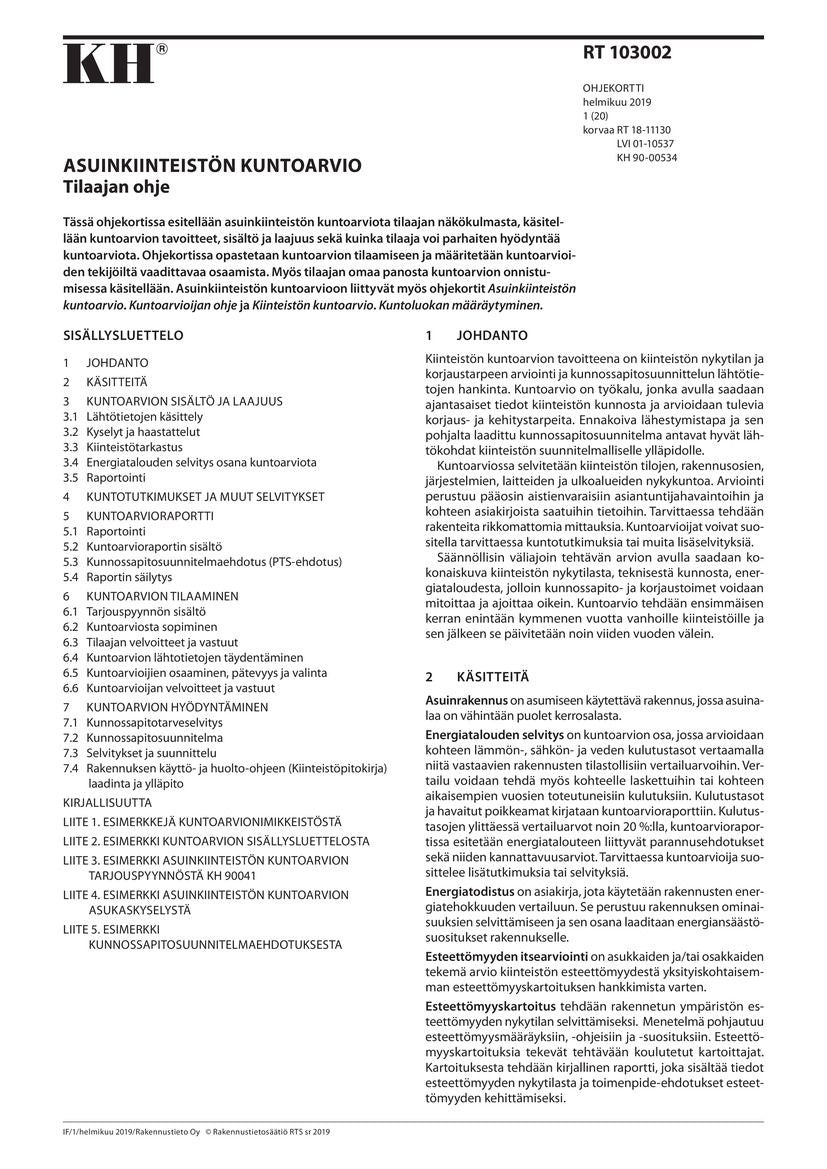 RT 103002, Asuinkiinteistön kuntoarvio. Tilaajan ohje