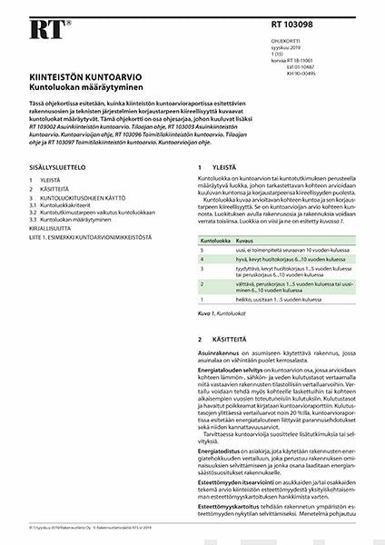 RT 103098, Kiinteistön kuntoarvio. Kuntoluokan määräytyminen