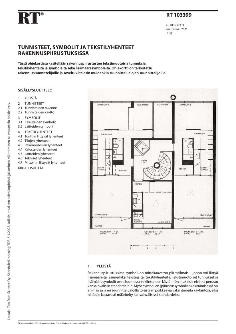 Tässä ohjekortissa käsitellään rakennuspiirustusten tekstimuotoisia tunnuksia, tekstilyhenteitä ja symboleita sekä lisämääresymboleita. Ohjekortti on tarkoitettu rakennussuunnittelijoille ja soveltuvilta osin muidenkin suunnittelualojen suunnittelijoille. Lue lisää