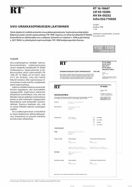 Esimerkkinä on sähköurakka sivu-urakkana. Esimerkin on laatinut v. 1998 ja päivittänyt v. 2017 RAKLI ry yhteistyössä sopimusehtojen YSE 1998 laatijaosapuolten kanssa.