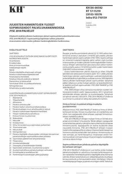 Ohjekortti sisältää julkisten hankintojen yleiset sopimusehdot palveluhankinnoissa JYSE 2014 PALVELUT. Sopimusehtoja käytetään valtion ja kuntien viranomaisten sekä muiden julkisten hankintayksiköiden hankinnoissa.