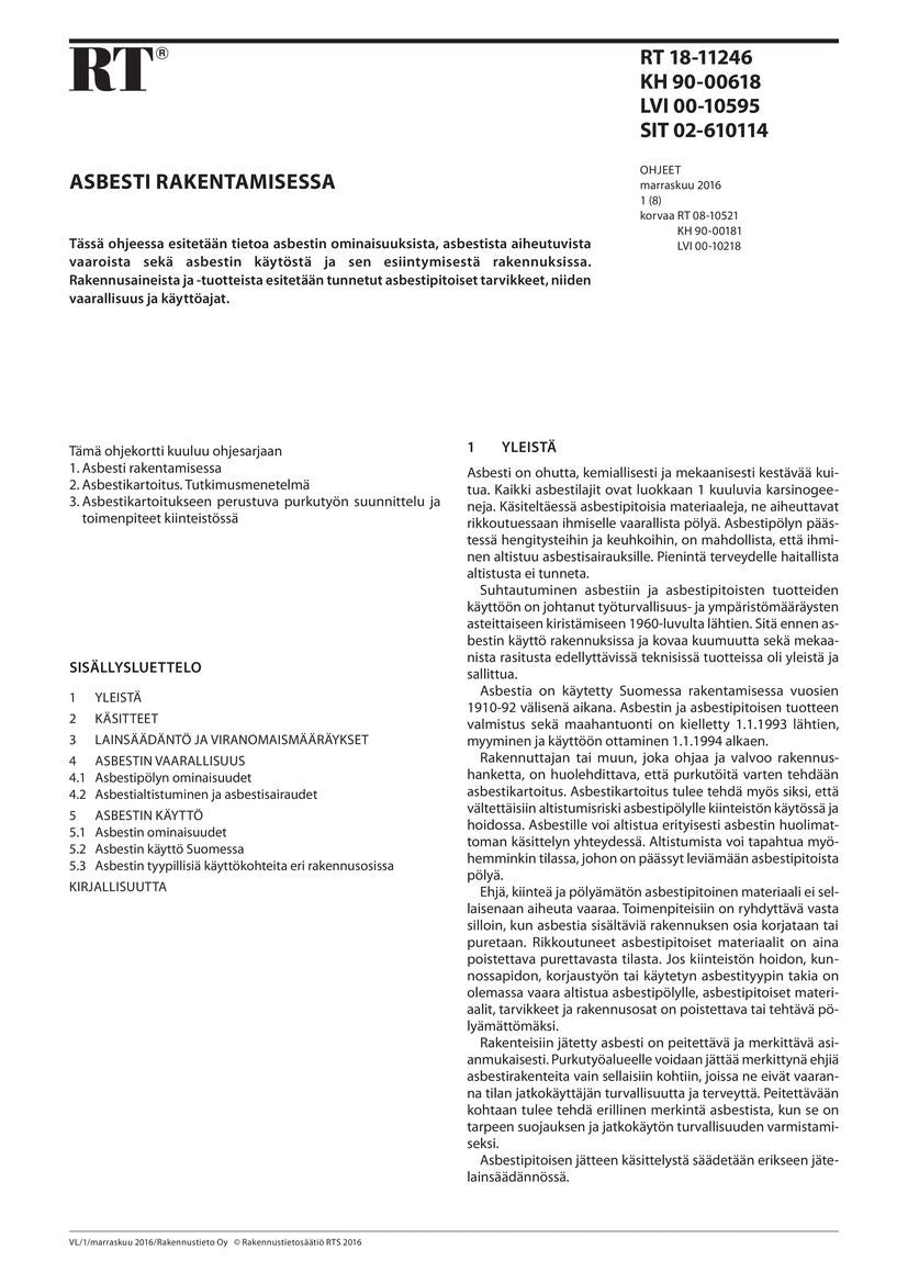 - Avainsanat työsuojelu; korjausrakentaminen; asbestipurkutyö; putkistot; putkistoremontti; asbestityöt; asbesti; asbestijätteet; asbestikartoitus; asbestituotteet
