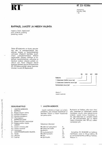 RT 33-10386, Rappaus, laastit ja niiden valinta