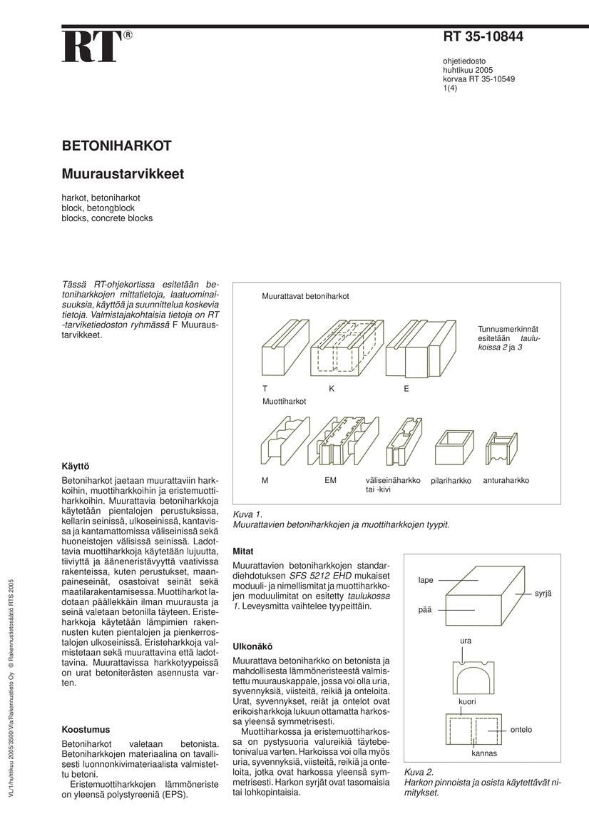 RT 35-10844, Betoniharkot. Muuraustarvikkeet E-kirja, suomi
