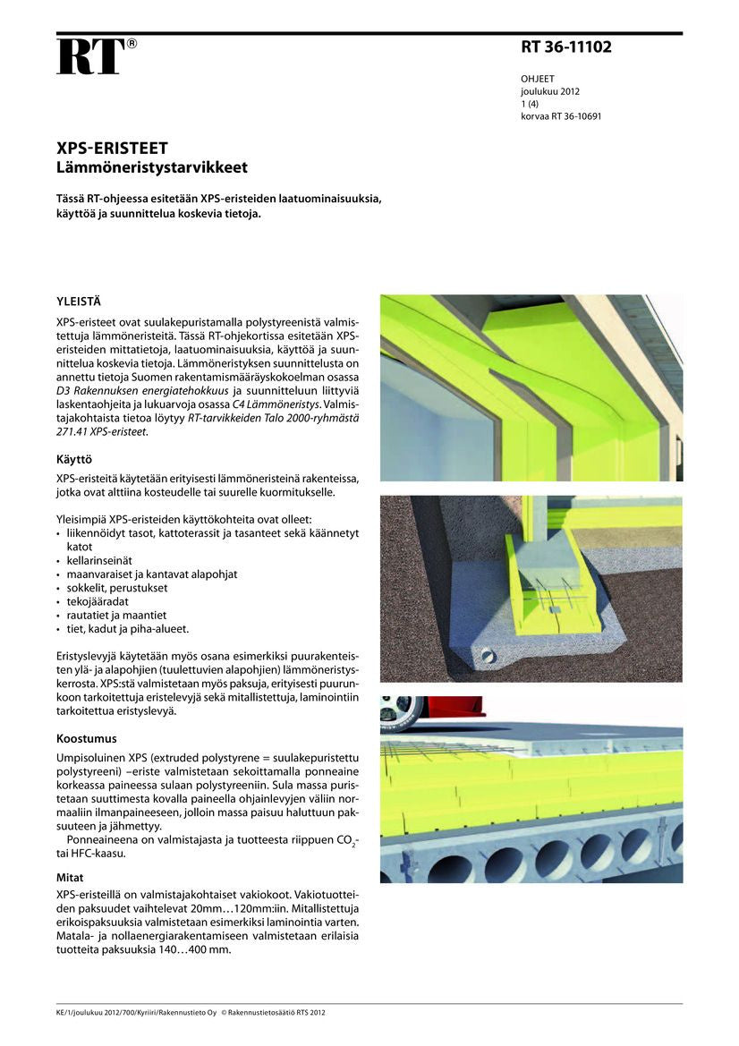 RT 36-11102, XPS-eristeet. Lämmöneristystarvikkeet