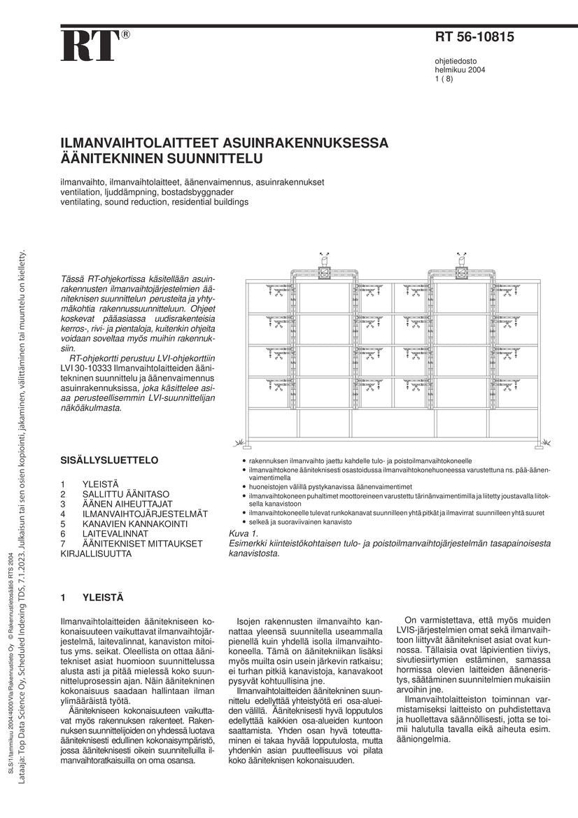 - Avainsanat asuinrakennukset; ilmanvaihto; ilmanvaihtojärjestelmät; asuintalot; LVI-suunnittelu; ilmanvaihtolaitteet; tuloilmakoneet; LVI-laitteet; äänitekninen suunnittelu; äänenvaimennus; äänitaso; poistoilmakoneet; poistoilmalaitteet