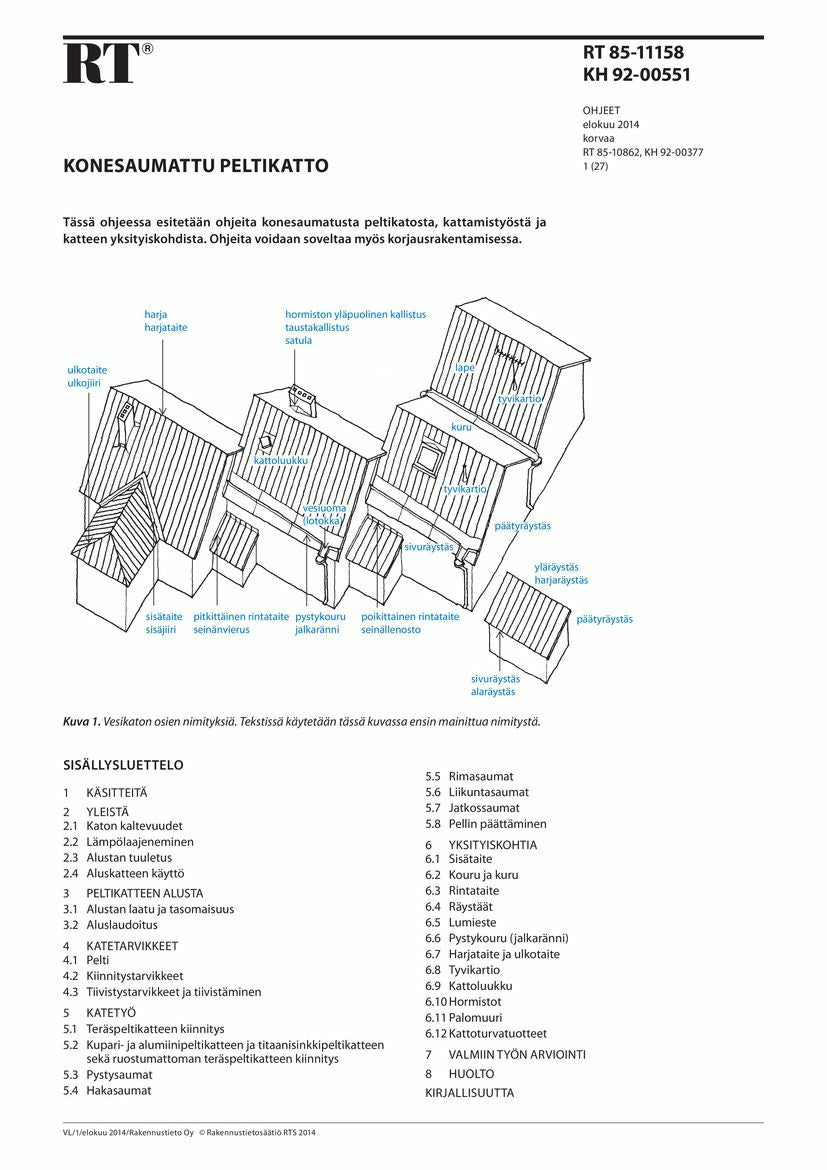 Tässä ohjeessa esitetään ohjeita konesaumatusta peltikatosta, kattamistyöstä ja katteen yksityiskohdista. Ohjeita voidaan soveltaa myös korjausrakentamisessa. Lue lisää