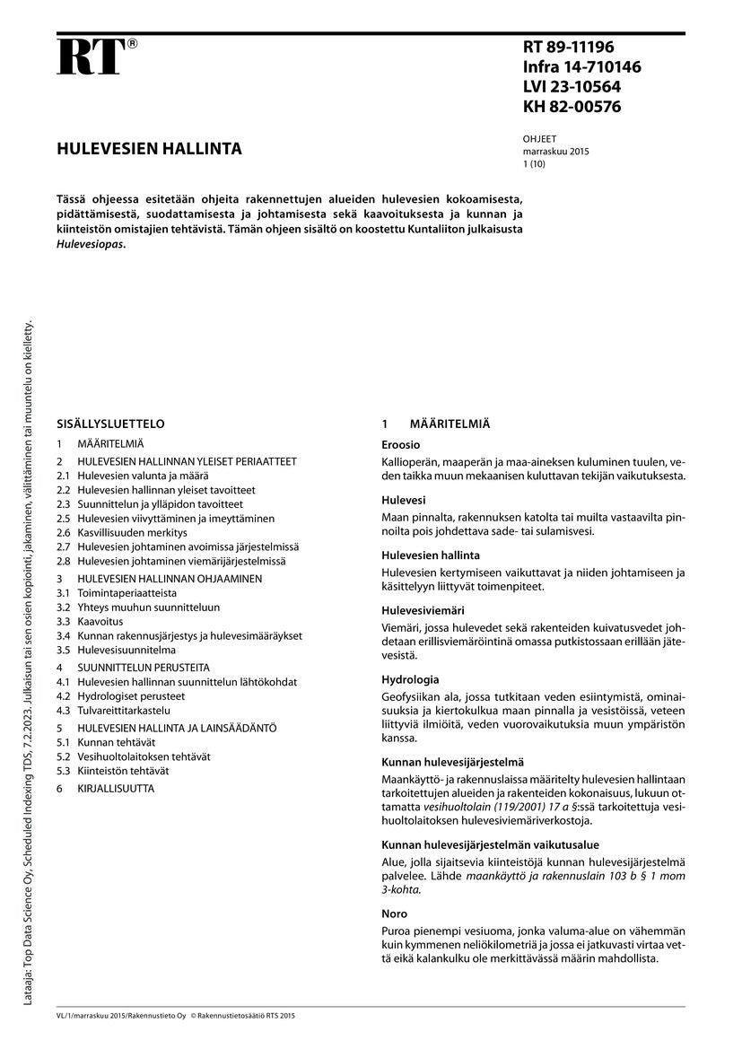 Sama ohje on julkaistu myös LVI-, KH- ja Infra-ohjeena numerolla LVI 23-10564, KH 82-00576, Infra 14-710146.