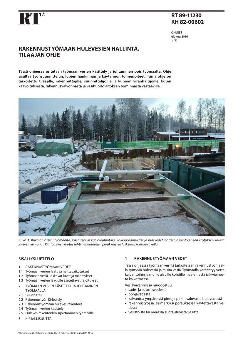 RT 89-11230, Rakennustyömaan hulevesien hallinta. Tilaajan ohje