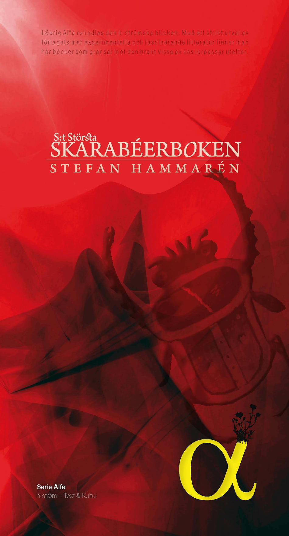 Med S:t Största skarabéerboken återupplivar Stefan Hammarén den hyllade, hammarénska romanformen från sin sopptrilogi (utkom 2001-2005). På samma sätt som sopptrilogin hängav sig åt soppans inneboende egenskaper, hänger sig Hammarén denna gång åt skalbaggar. Och även denna gång är S:t Största skarabéerboken den första boken i en trilogi som utges under hösten 2010. Hammaréns romaner är olika alla andra vi läser och har läst i det här landet. Här möter vi en söndersprängd grammatik och semantik, där själva läsupplevelsen sätts i spillror och fragment, samtidigt som textmassorna överflödar och omsluter. Skarabéertrilogin utkommer i förlagets serie Alfa. Läs mer på forlag.hstrom.se/alfa.