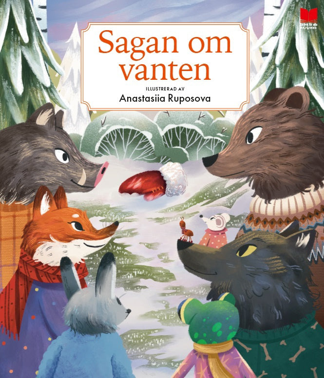 En pojke har tappat sin vante i skogen. Men den röda vanten blir snart ett mysigt bo till en liten mus. Därefter kommer grodan och frågar om han också får flytta in. Sen kommer kaninen, räven och vargen. Snart är vanten full av olika djur från skogen! Hur många djur får egentligen plats i en vant... Lue lisää