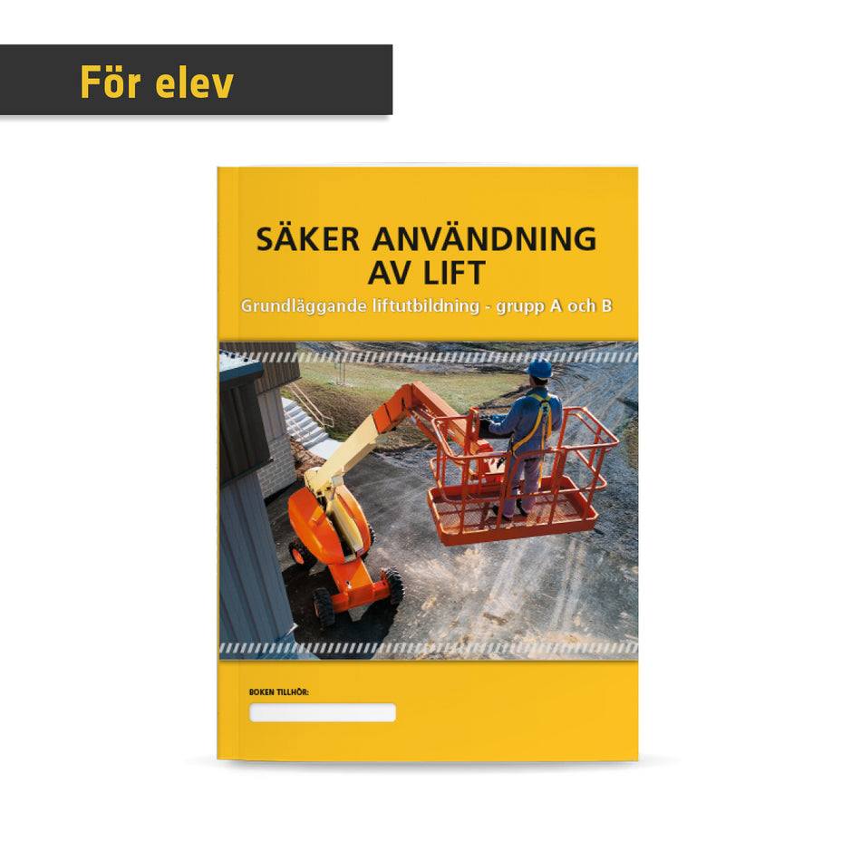 Boken "Säker användning av lift" ingår i den teoretiska och praktiska liftutbildningen. Boken ska ge dig kunskaper om hur du blir en säker och effektiv användare av mobila arbetsplattformar.