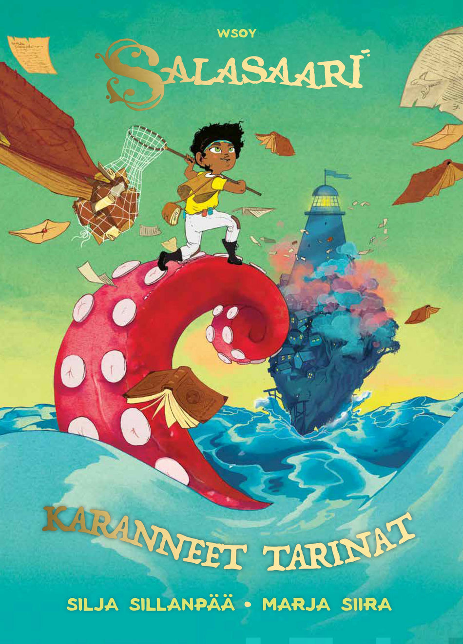 Edla ja Juju kuljettavat kirjoja, kirjeitä ja kaiken maailman kääröjä kuumailmapalloillaan kohti Salasaarta. Yksi palloista pamahtaa, ja tuhannet tarinat karkaavat ympäri Salasaarta! Tarvitaan lukijankin apua, jotta ne kaikki saadaan kiinni ja taltioitua Salasaaren kirjastoon.