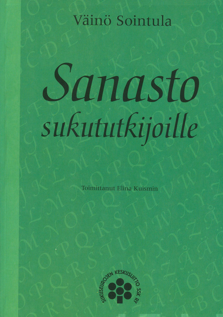 Väinö Sointula on Nurmosta kotoisin oleva sukututkimuksen harrastaja, joka on tutkinut sukuaan yli 35 vuoden ajan. Tutkiessaan hän on kerännyt kirkon-, käräjä-, maa-, henki- ja muissa historiankirjoissa esiintyneitä sanoja ja lyhenteitä, jotka ovat vaatineet tulkintaa. Noista sanoista sekä useiden muiden sanastojen tulkinnoista Sointula on koonnut tämän Sanaston. Sukututkimusharrastajat saavat käyttöönsä todellisen aarteen, sillä kirjaan on koottu lähes 12 500 sanaa, joihin sukututkija saattaa tutkimuksissaan törmätä. Lisäksi sanaston lopusta löytyy luettelot henkilönimien käännöksistä ja muunnelmista, sukulaisuussuhteiden nimityksistä sekä vanhoista mittayksiköistä.