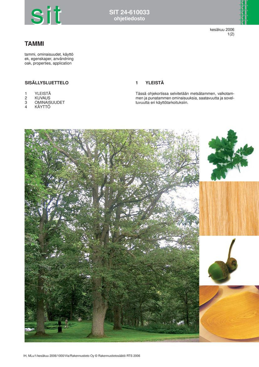 Tässä ohjeessa selvitetään metsätammen, valkotammen ja punatammen ominaisuuksia, saatavuutta ja soveltuvuutta eri käyttötarkoituksiin.
