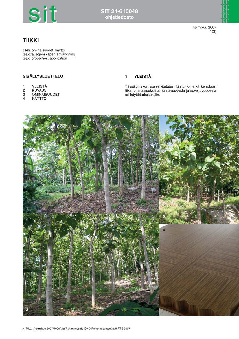- Avainsanat puulajit; puutavara; rakennuspuutavara; puun ominaisuudet; tiikki