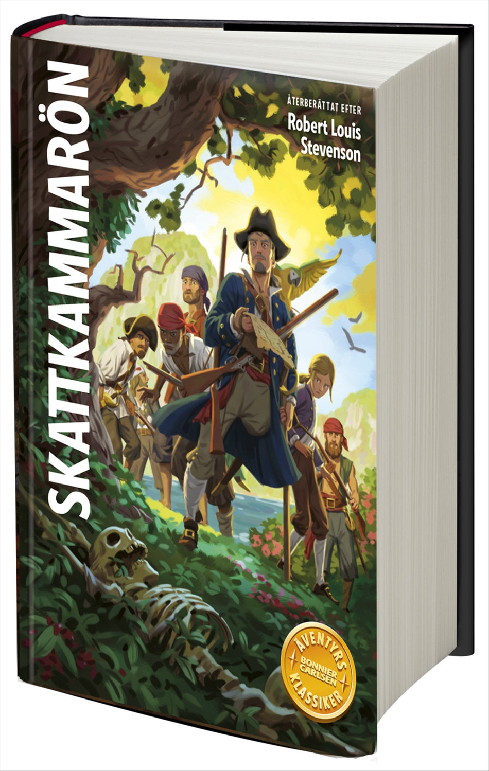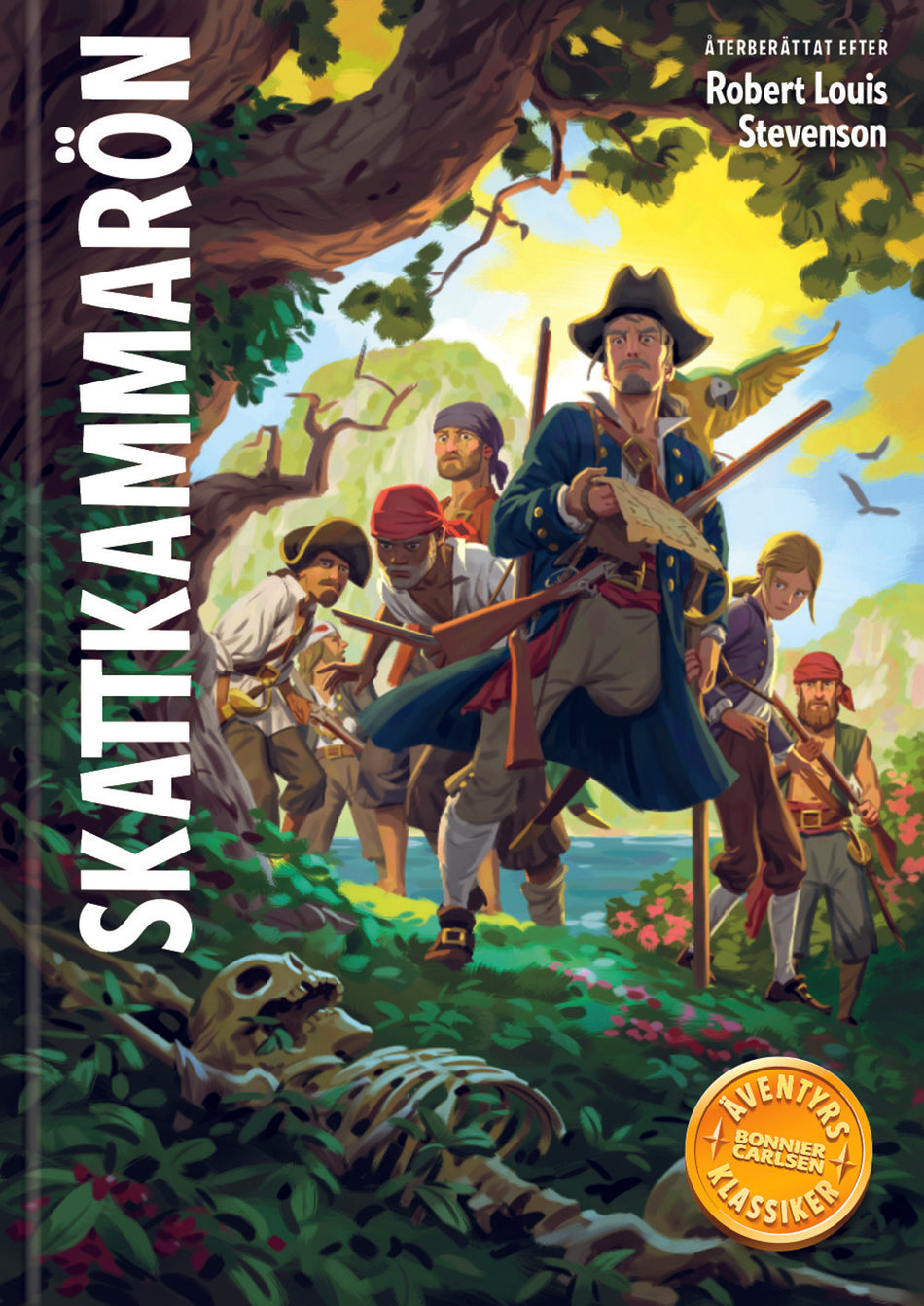 En av världens bästa äventyrsböcker – återberättad för dagens barn och med spännande nya bilder!Den unge Jim Hawkins hittar en äkta skattkarta och får följa med på ett skepp som ger sig av till Karibien för att leta reda på skatten. Med på skeppet är också den enbente piraten Long John Silver, so... Lue lisää