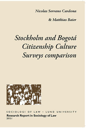 This report is an account for the preliminary results of the comparison of ‘Civic Cultures’ in Stockholm and Bogotá. The comparison is part of an ongoing cooperation between the Sociology of Law Department, Lund University and Corporación Visionarios por Colombia – Corpovisionarios. ‘Civic Cultur... Lue lisää
