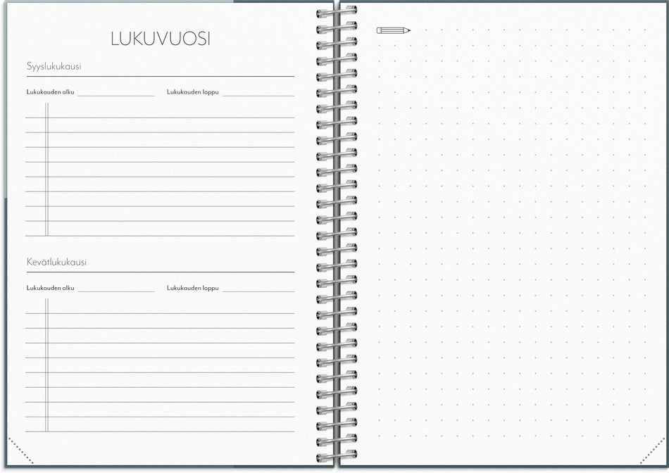 Selkeä seuralainen läpi lukuvuoden! Kun suunnittelet oikein opintosi, mahdollisuutesi saavuttaa tavoitteesi kasvaa ja arkesi pysyy järjestyksessä. Kirjaa koetulokset, luo tehtäväluetteloita ja muista deadlinet ja tehtävien päivämäärät. Lisäksi löytyy taloussivut, joilla voit seurata budjettiasi, ... Lue lisää