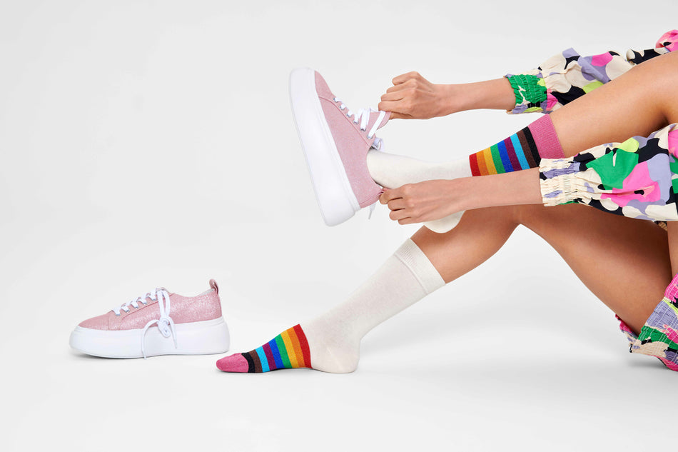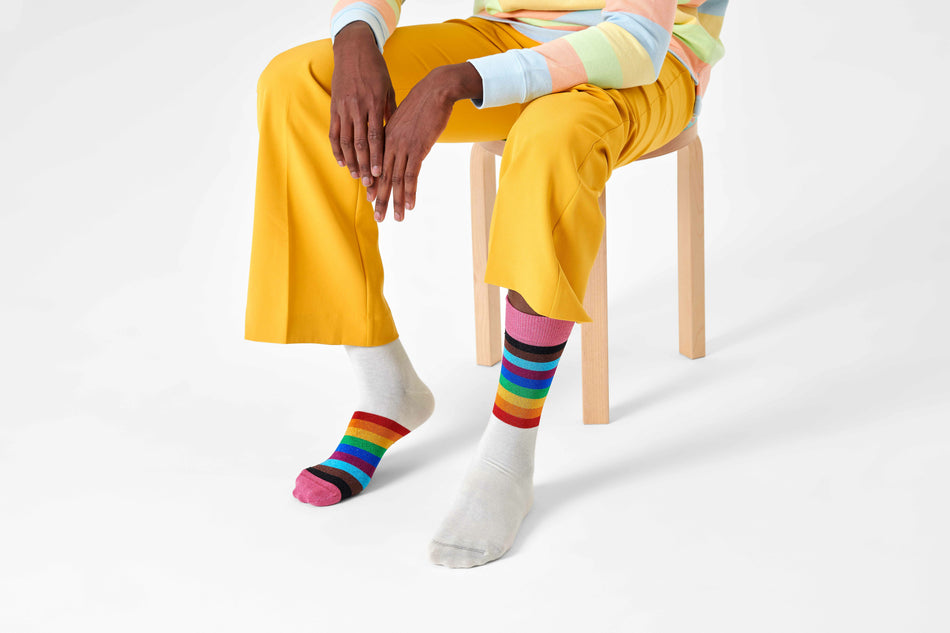 Always walk with pride! Pride Rainbow -mallimme esittelee koko värikkään sateenkaaren glittereillä höystettynä – toisessa sukassa värit ovat sukan varressa ja toisessa sukan jalkaosassa.Olemme sitoutuneet tukemaan LGBTQI+ -yhteisöä ympäri vuoden, joten lahjoitamme 10 % kaikkien Pride-aiheisten tu... Lue lisää