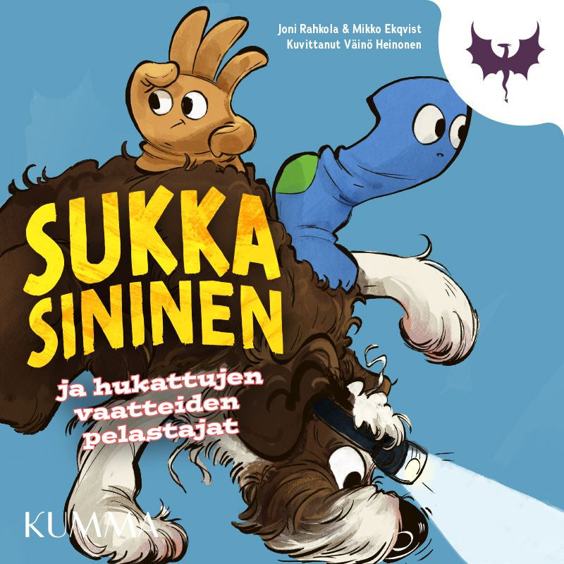 Sukka Sininen ja hukattujen vaatteiden pelastajat jatkaa hurmaavien Sukka Sinisen, Naava-koiran ja niiden ystävien seikkailuja. Kutkuttava tarina henkiin heränneistä vaatteista, kasveista ja esineistä pitää otteessaan loppuhuipennukseen asti – ja osoittaa samalla, miten tärkeää muiden auttaminen on, oli kyse sitten ystävistä tai täysin tuntemattomista hanskoista.