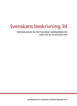 Den trettiofjärde sammankomsten ägde rum den 22–24 oktober 2014 på Språk- och litteraturcentrum i Lund. Temat var Svenskan i teori och praktiker. Konferensen samlade ca 150 deltagare till 88 presentationer – plenarföredrag, workshoppar och sektionsföredrag. I denna volym publiceras två av plenarföredragen och 30 av föredragen från sektioner och workshoppar.