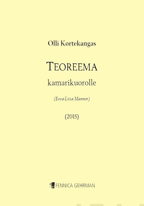 Teoreema (Theorem) was commissioned by the WioL choir. It is setting of Eeva-Liisa Manner's lyrics. Kortekangas is an experienced composer of vocal music, which is apparent in Teoreema: the lyrics are coloured by climaxes and more tranquil sections.