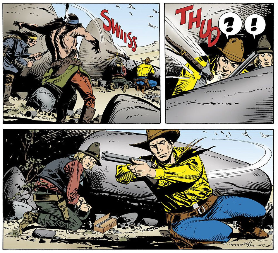 Tex ratkaisee tilanteen Canyon Pueblon kylässä, jossa rikolliset ovat pysäyttäneet rautatien rakentamisen. Seikkailun loppuratkaisu on yhtä yllättävä kuin näyttäväkin. Toinen tarina kertoo erikoislaatuisesta suhteesta, joka syntyy Texin ja nuoren ja peräänantamattoman etsintäkuulutetun Andy Wilso... Lue lisää