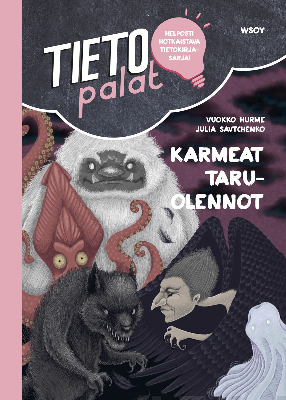 Uusi Tietopalat-kirja pitää sisällään puistattavaa tietoa ja hurjia faktoja tunnetuimmista ja muutamista vähän harvinaisemmistakin hirvityksistä. Kirjassa käydään läpi, millaisia taruja kammotuksista on kerrottu ja mistä uskomukset ovat peräisin. Satutko esimerkiksi tietämään, miksi vapyyrilla ei ole varjoa?