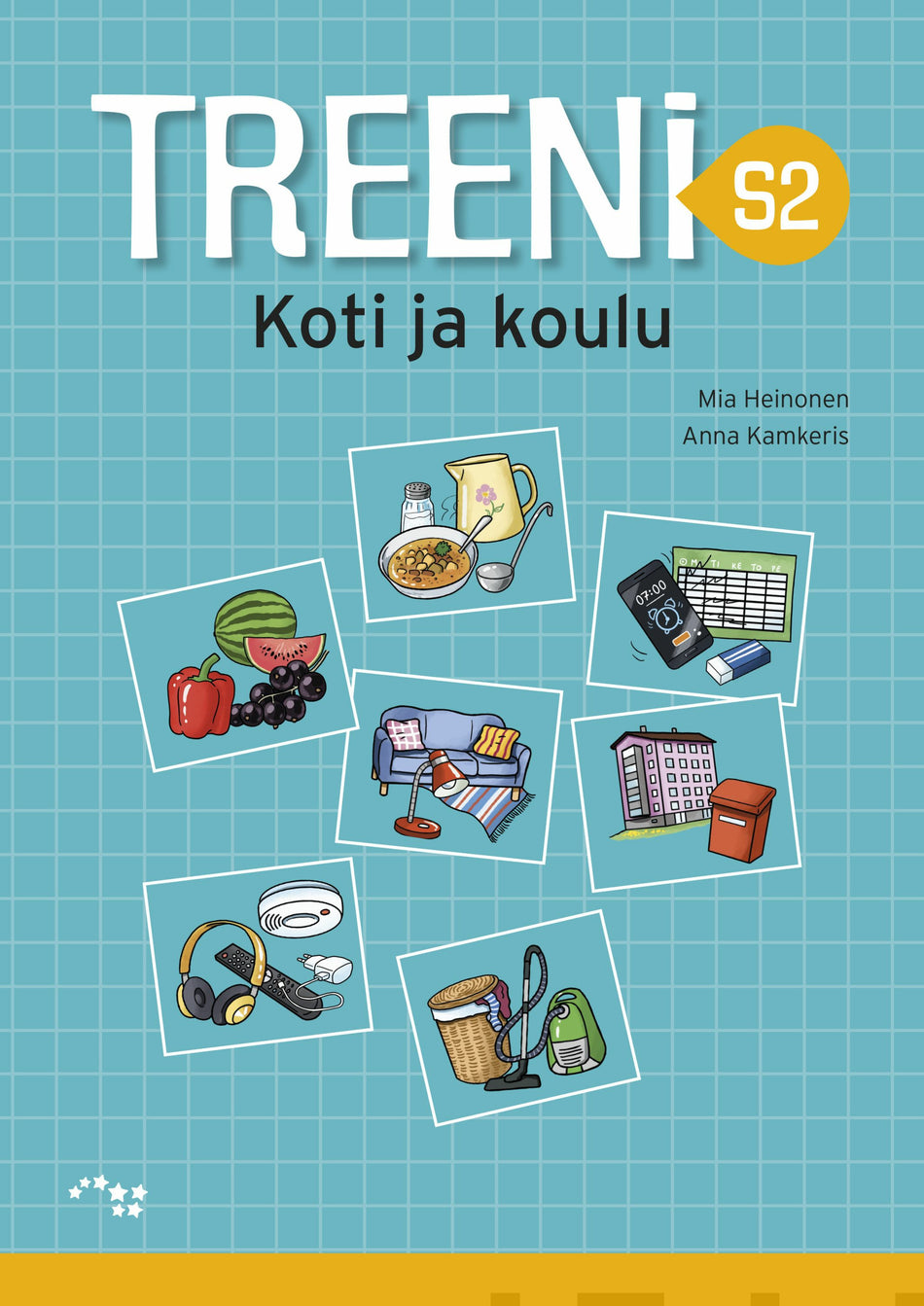 Treeni S2 Koti ja koulu -tehtäväkirjassa harjoitellaan kouluun ja kotiin liittyvää sanastoa. Lisäksi opetellaan kelloon, ruokaan ja ruuanlaittoon liittyviä sanoja. Kielitiedossa harjoitellaan muun muassa partitiivia, pidän/en pidä -rakennetta ja käskymuotoa. Lue lisää