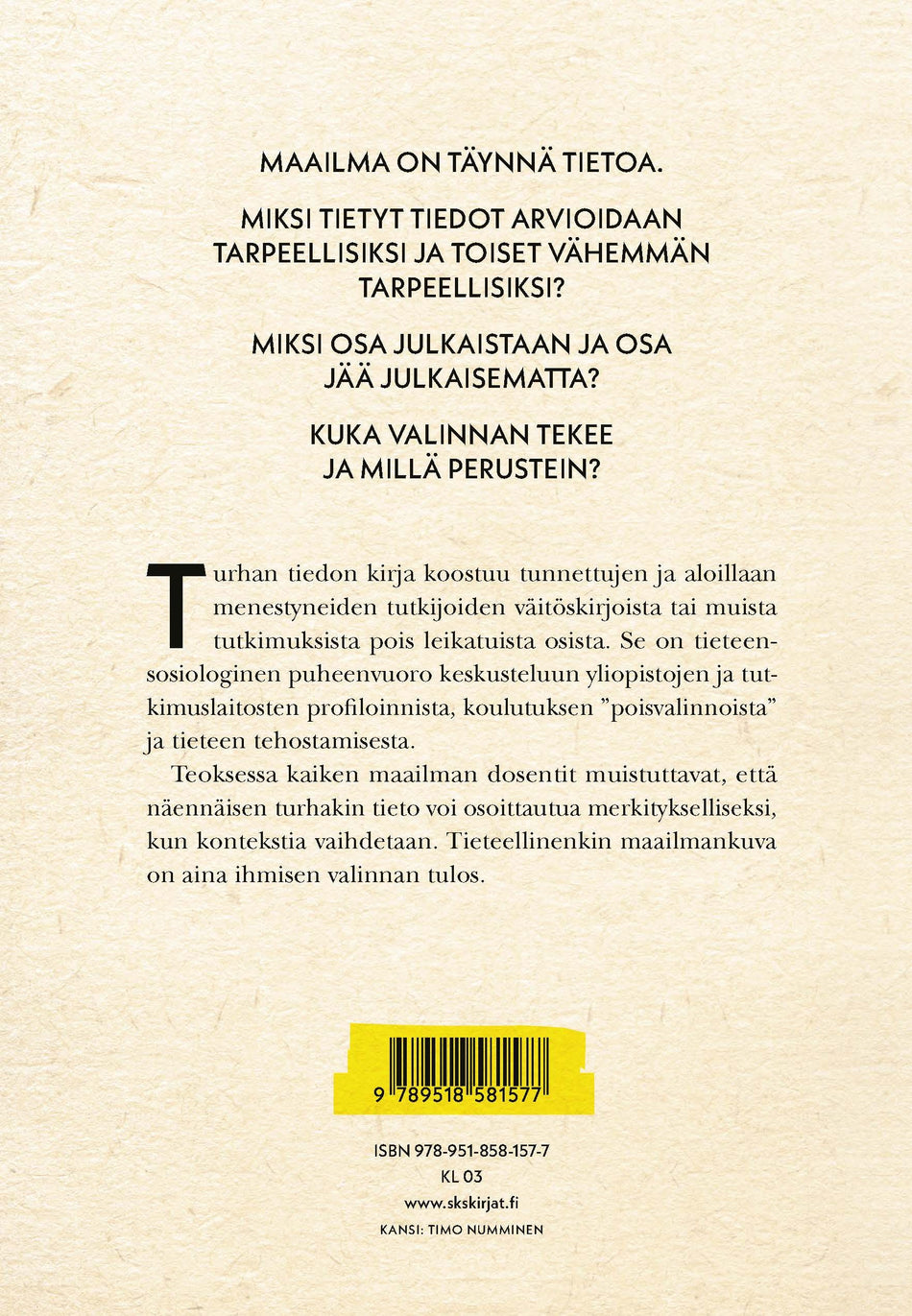 Turhan tiedon kirja koostuu tunnettujen ja aloillaan menestyneiden tutkijoiden väitöskirjoista ...