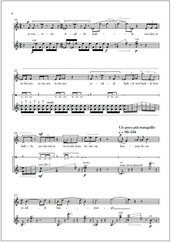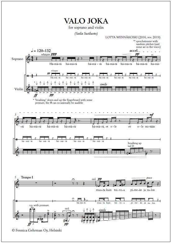 For the work valo joka (“the light, which”) both the poem by Saila Susiluoto and the composition by Lotta Wennäkoski were commissioned at the same time, and thus they were created partly overlapping and influencing each other. The unusual process produced an intense duet in which virtuosity and r... Lue lisää