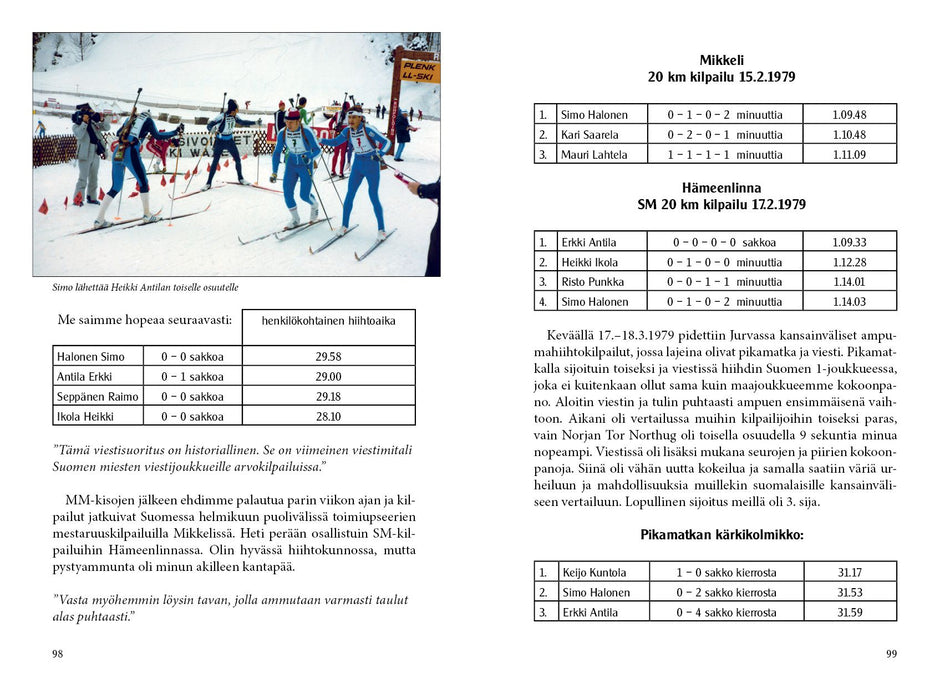 - Avainsanat urheilu; ampumahiihto; urheiluhistoria; hiihto; maailmanmestarit; huippu-urheilijat; talviurheilu; tuotekehitys; ampumahiihtäjät; Simo Halonen; maailmanmestari
