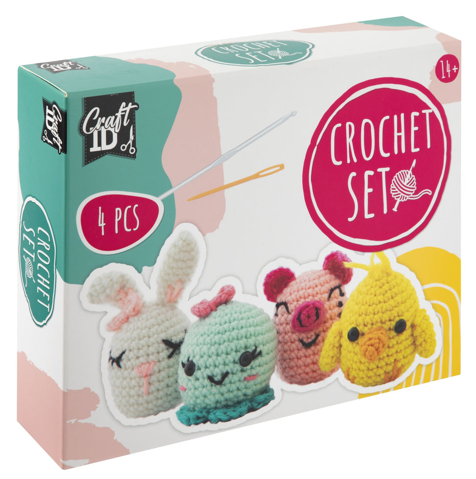 Virkkaussetti 4 eläintä: Mustekala, possu, kana ja jänis