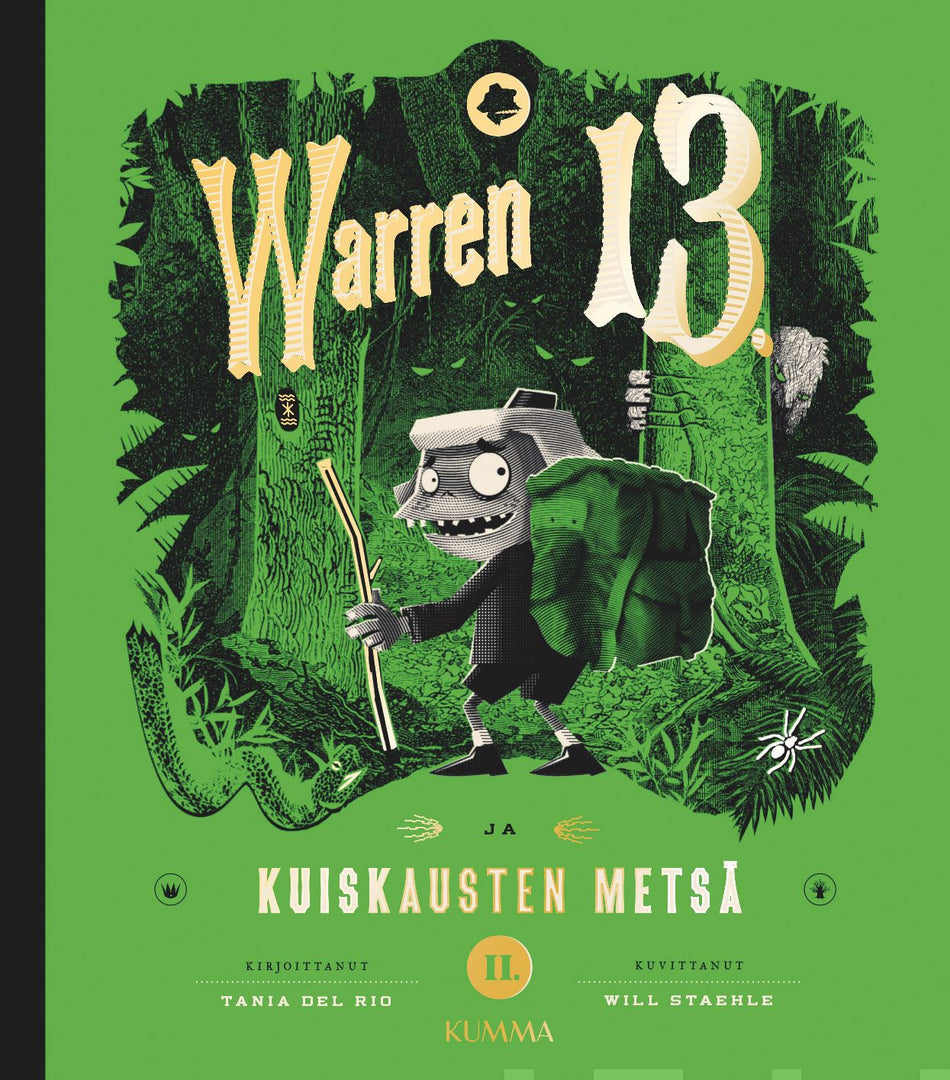 Warren 13. ja kuiskausten metsä on toinen osa upeasti kuvitettua ja kerrottua Warren 13. -sarjaa. Kirjan pääväri on vaihtunut punaisesta ilki-ihanaan myrkynvihreään, joka korostaa Warrenin tarinan aavemaista, viktoriaanista tunnelmaa.