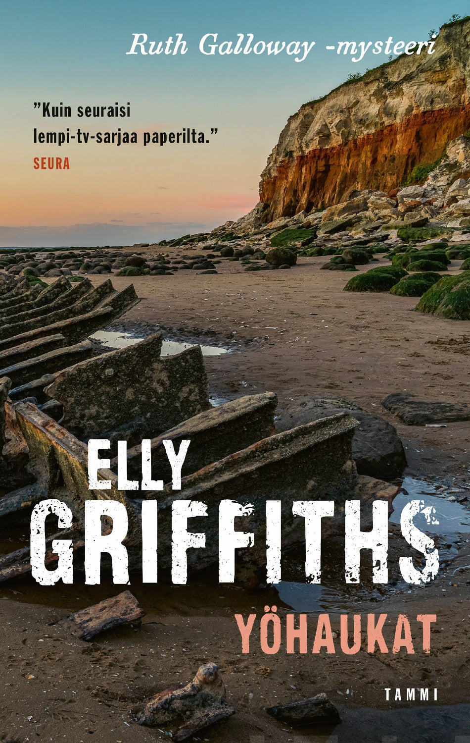 Elly Griffiths (s. 1963) on englantilainen kirjailija, joka tunnetaan parhaiten arkeologi Ruth Gallowayn rakastetuista seikkailuista. Ennen kirjailijanuraansa Griffiths, oikealta nimeltään Domenica de Rosa, työskenteli lastenkirjallisuuden parissa kustantamossa. Ruth Galloway -sarjan idea syntyi lomalla Norfolkissa. Ahmittavan hyvä dekkarisarja on kaapannut rikoskirjallisuuspalkintoja ja vakiinnuttanut paikkansa lukijoiden ikisuosikkina.