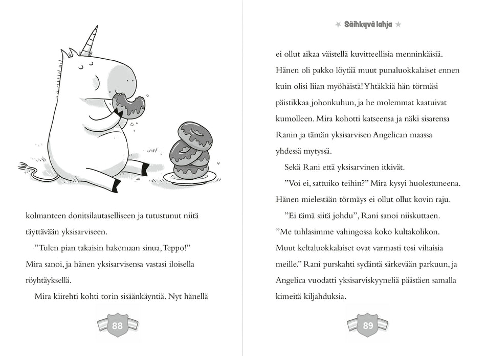 • Avainsanat huumori; ystävät; seikkailu; lasten romaanit; koulu; helppolukuiset; yksisarviset; 6-9-vuotiaille